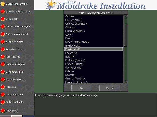 DrakX est le nouveau programme d'installation de Linux-Mandrake. Il remplace avantageusement l'ancien programme d'installation: son interface est entièrement graphique, il est très facile d'utilisation, vous pouvez revenir à tous moments sur tous les aspects de la configuration et vous pouvez même choisir le type d'installation que vous voulez en fonction de vos connaissances.