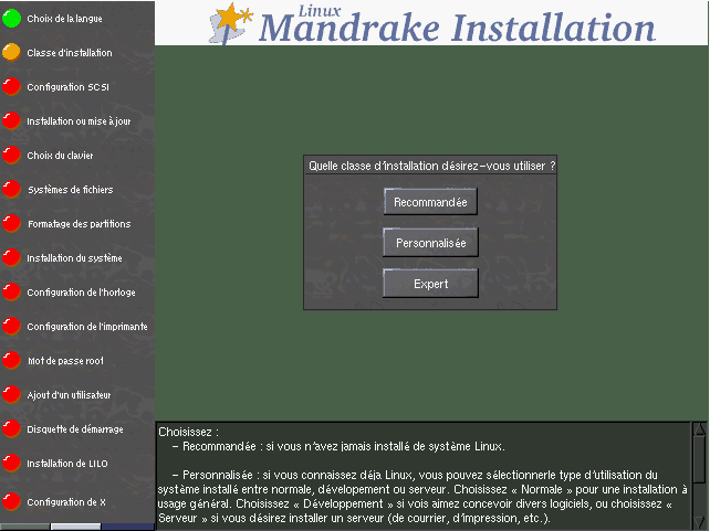 Après vous avoir demandé le type d'installation que vous désirez, DrakX vous demandera quelle classe d'installation vous souhaitez (figure 7.2).