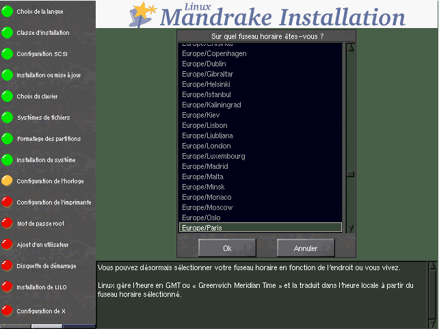 Vous pouvez ici choisir votre fuseau horaire dans la liste qui apparaît (figure 7.7).