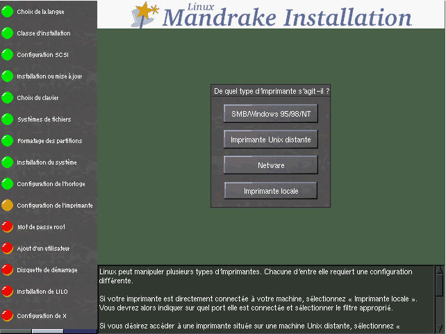 Quel que soit le type de votre imprimante, DrakX vous proposera de tester votre configuration. En cas d'échec, vous pourrez recommencer autant de fois que nécessaire.